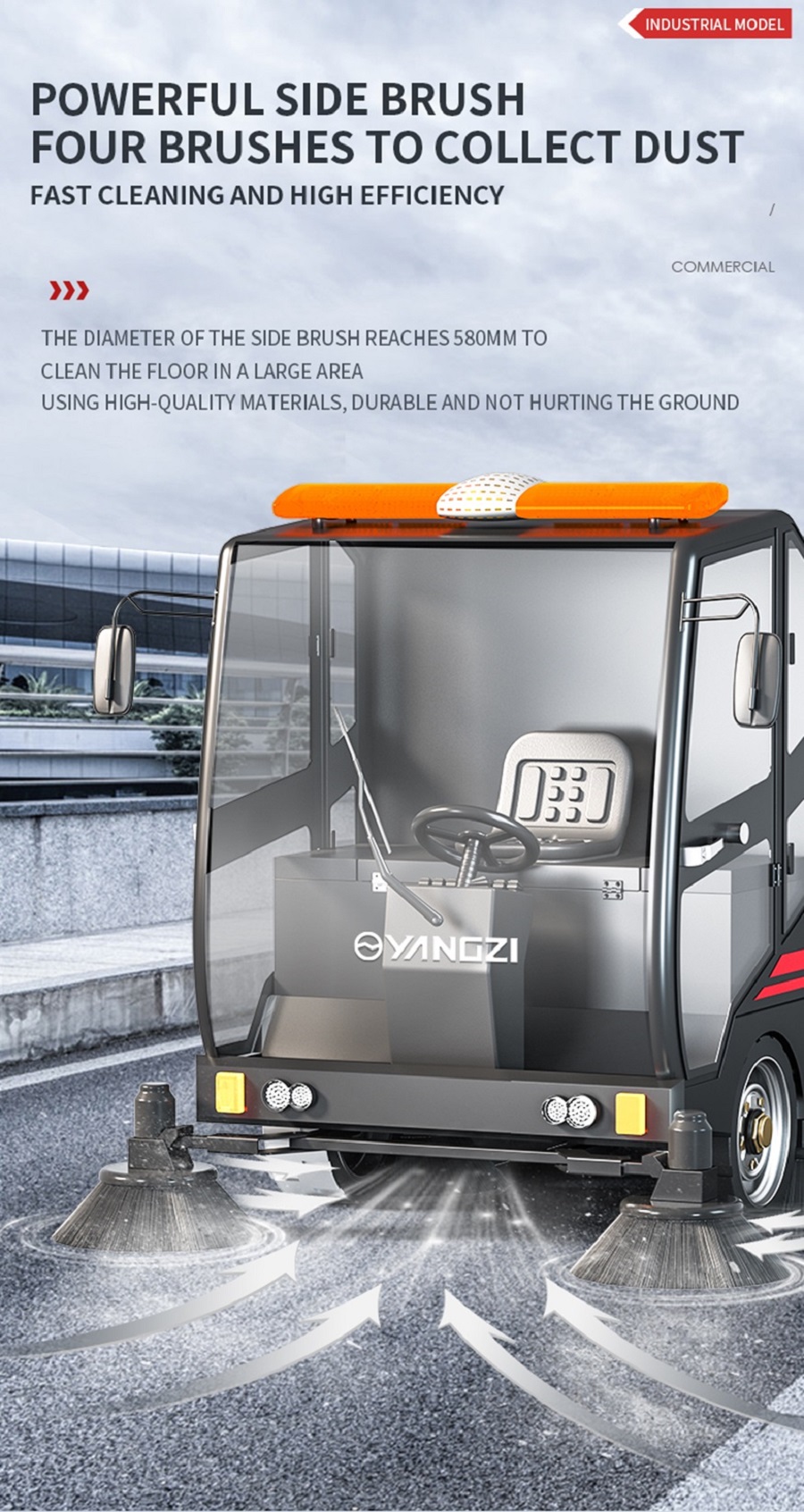 Xe quét rác ngồi lái Yangzi S14 rất phù hợp cho công việc vệ sinh sàn tại các nhà máy, khu dân cư và các khu vực khác. Nó có thể nhanh chóng làm sạch rác và bụi ở những khu vực rộng lớn và cải thiện hiệu quả làm sạch.