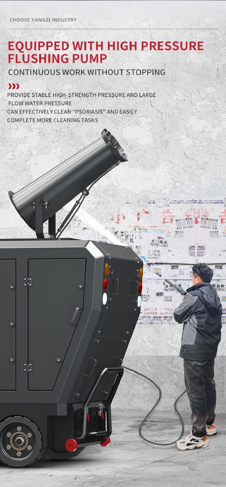 Xe quét đường đa năng Yangzi S15 có chức năng quét sàn, hút bụi và phun sương ba trong một, làm sạch 15.000 mét vuông trong một giờ. Máy phun sương sử dụng thiết kế vòi phun hình vòng, có phạm vi phun xa và đạt hiệu quả giảm bụi tối đa. Nòng súng rất linh hoạt và góc ngang có thể dễ dàng điều chỉnh tới 350 độ. Xe quét sàn S15 còn được trang bị máy bơm phun rửa áp lực cao. Áp suất cường độ cao ổn định và áp suất nước lưu lượng lớn có thể làm sạch hiệu quả các quảng cáo trên tường và dễ dàng hoàn thành nhiều công việc vệ sinh hơn. Công suất mạnh mẽ 1800W và khả năng leo dốc tối đa có thể dễ dàng vượt qua gờ giảm tốc và dốc thấp.